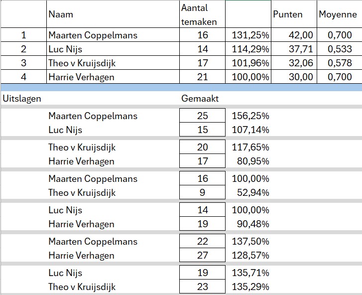 Poule indeling en standen