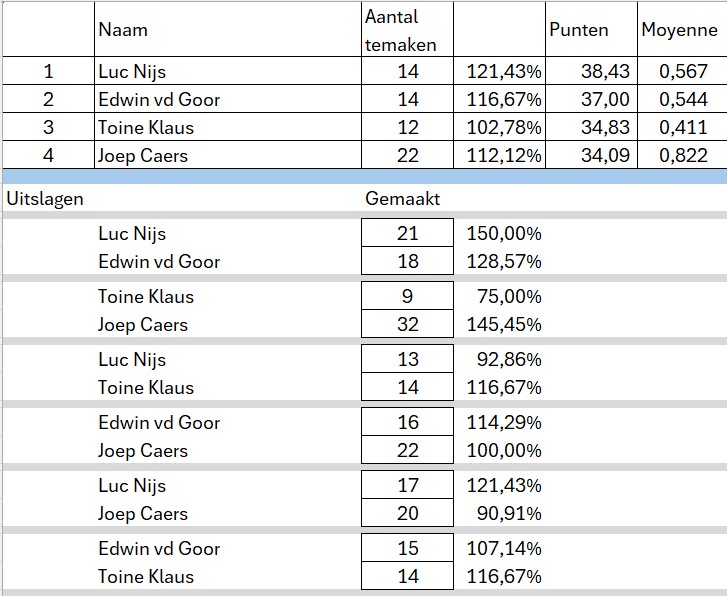 Poule indeling en standen