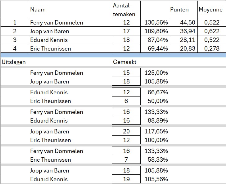 Poule indeling en standen