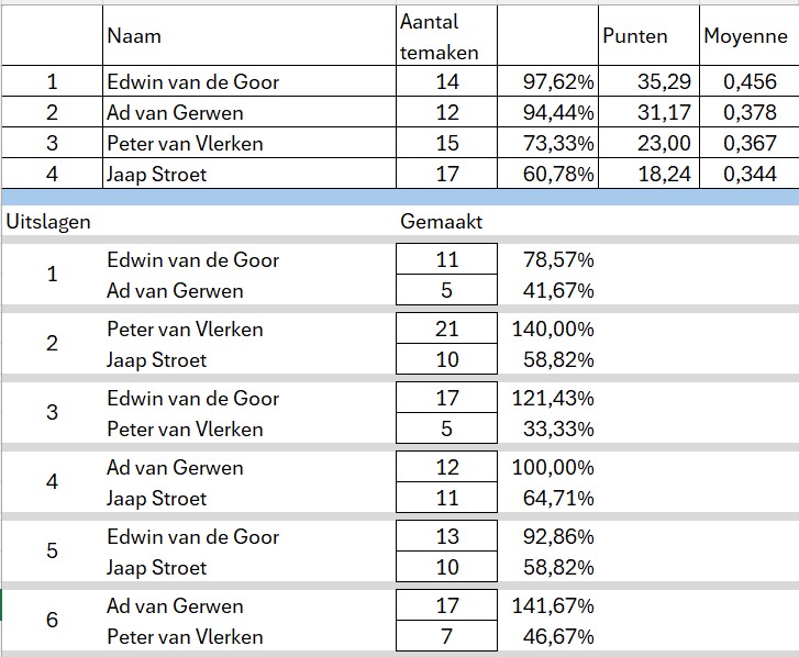 Poule indeling en standen