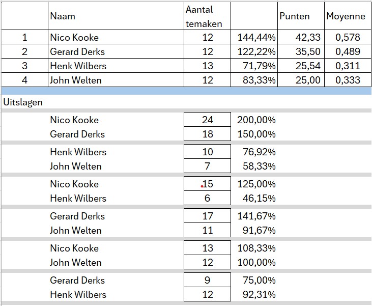 • Poule indeling en standen