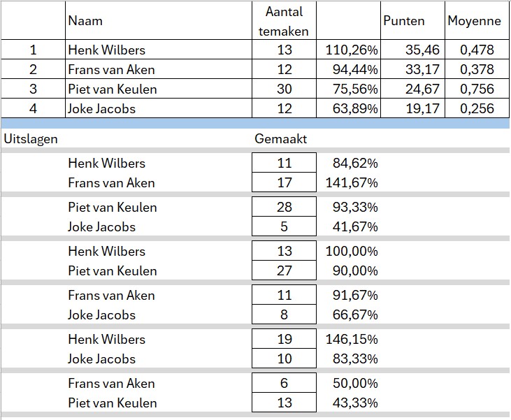 Poule indeling en standen