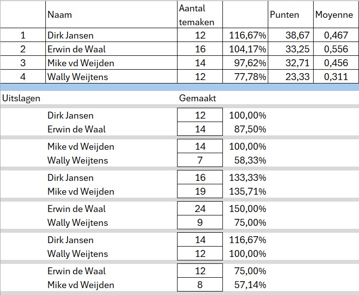 Poule indeling en standen